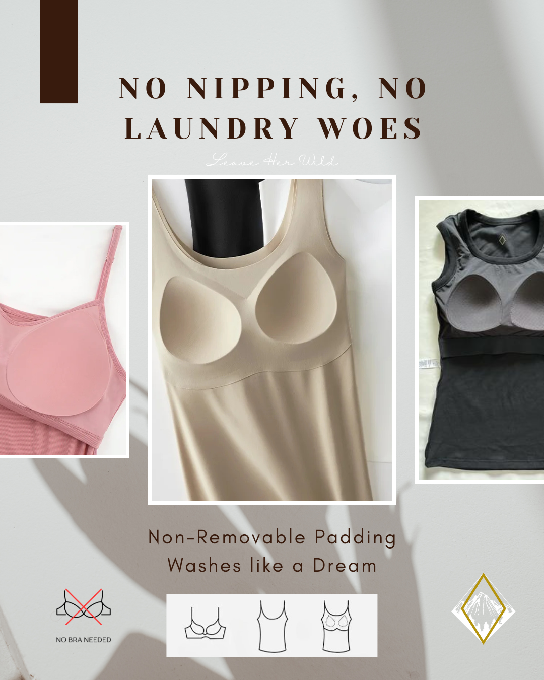 Avoid nipping out and laundry day disasters with our ultra soft, thin, premium quality, and breathable built in padding. No bra needed... EVER